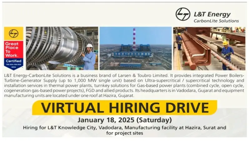 L&T Energy Virtual Hiring Drive 2025 | Draughtsman, HVAC Engineer, Maintenance Engineer, Welding Engineer & Others | Diploma / Degree | Last date for Application: 16 January 2025 |